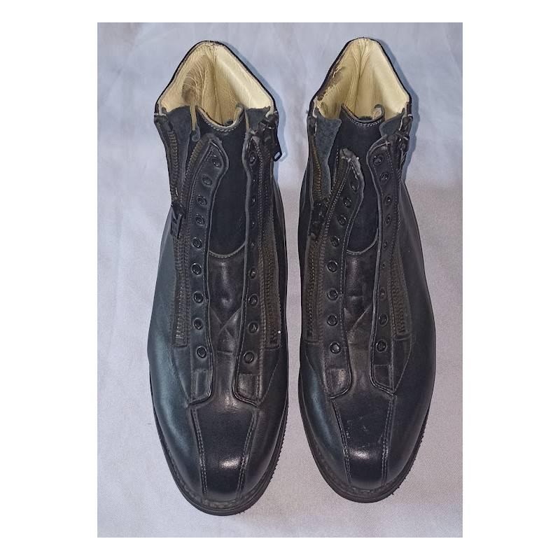 Des bottes pilotes Armée de l’Air authentiques présentent un cuir de qualité, une coupe adaptée au vol et une usure naturelle. Les détails de fabrication et la robustesse générale confirment un usage militaire.